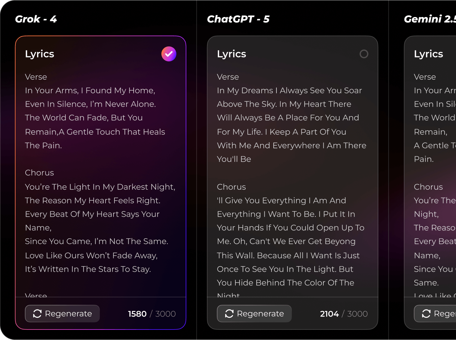 In Meloty.ai, lyric generation is no longer an isolated "black box" operation. You can call upon multiple large models simultaneously