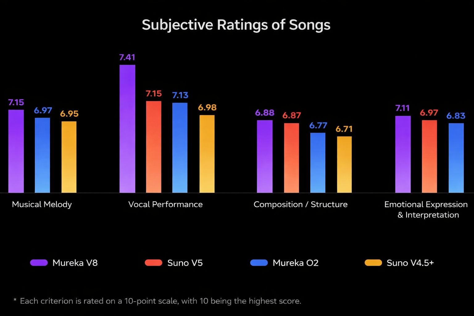 Flagship Melody & Elite Vocals. Powered by MusiCoT™ technology, this model delivers a massive leap over V7.6 with complex, studio-quality melodies and highly expressive vocals.