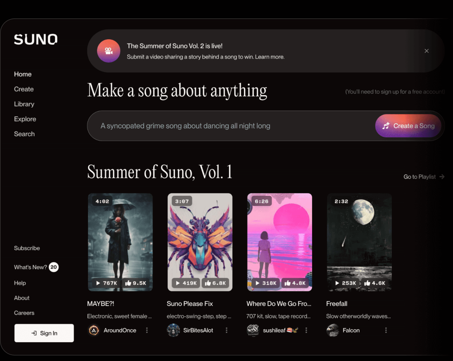 Create high-quality, full-length tracks up to 5 minutes 30 seconds. No short clips here.
