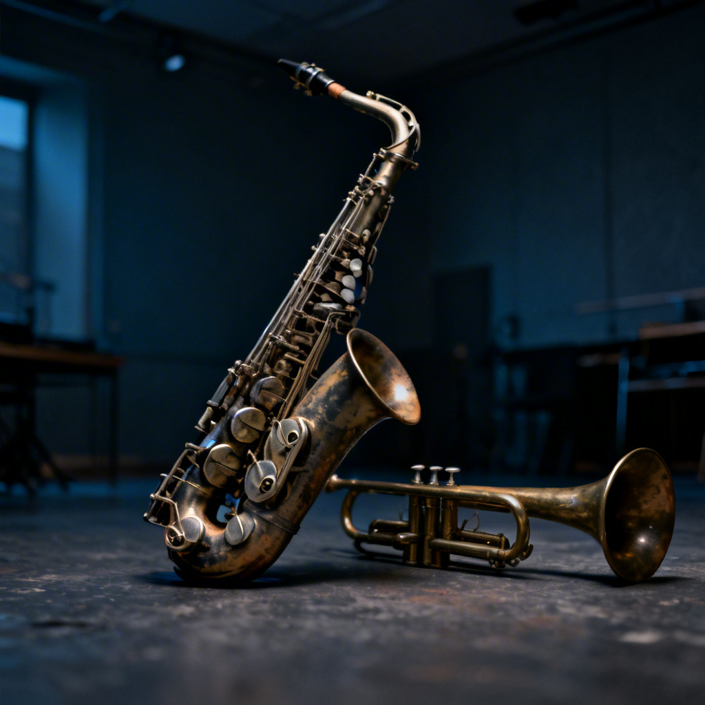 scandinavian jazz, ecm records style, 60 BPM, tenor sax, muted trumpet, melancolic, dark,